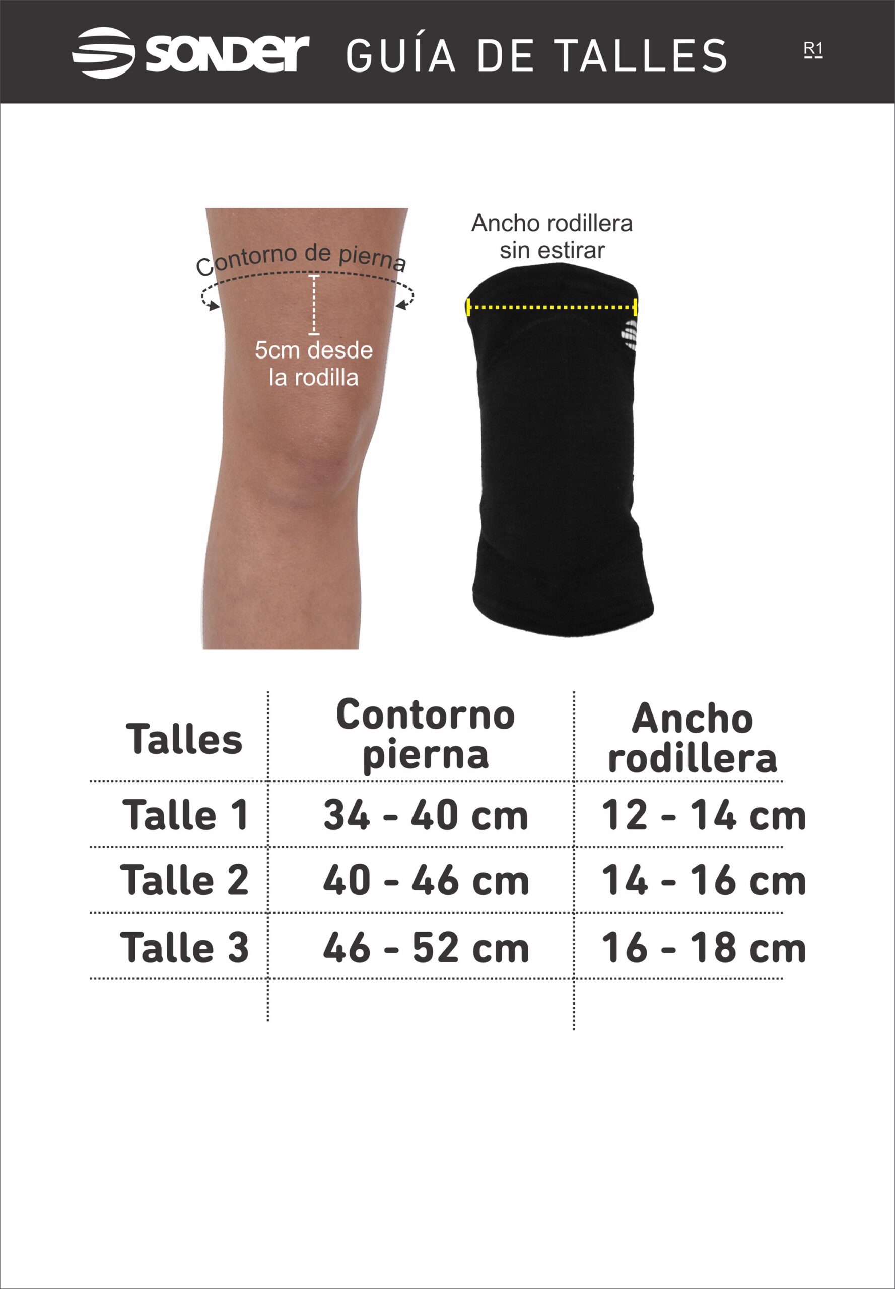 Talles – Contorno pierna – Ancho rodillera